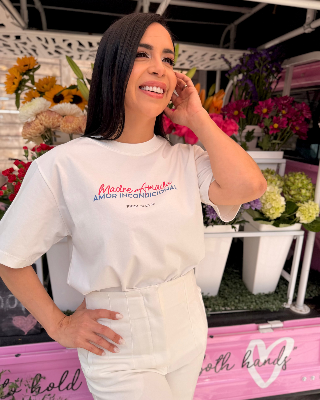 Vestir esta pieza con palabras que me recuerdan que soy hija de mi Padre Celestial y su frescura está en mi, me hace sentir como la niña de sus ojos. Definitivamente tienes que tener esta t-shirt en tu colección. Me la regale y se la regale a mi hija y mi amiga para que al usarla recuerden que pertenecen a nuestro Padre Amado.