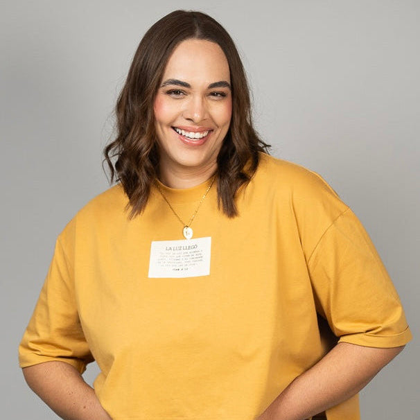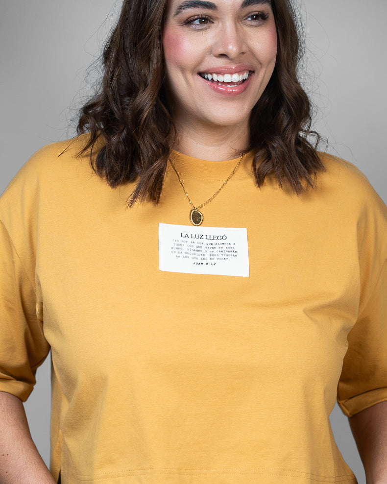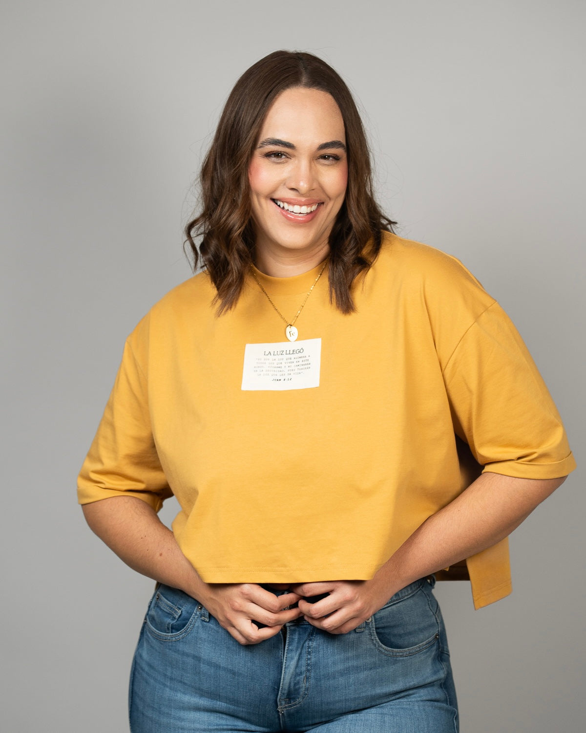 La Crop Top “La Luz Llegó” fue diseñada intencionalmente para la mujer cristiana que desea vestir con estilo, propósito y autenticidad.